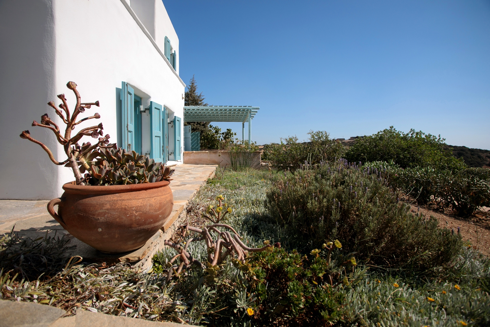 Cycladic style with modern comforts. Built on a hill with unobstructed views,
