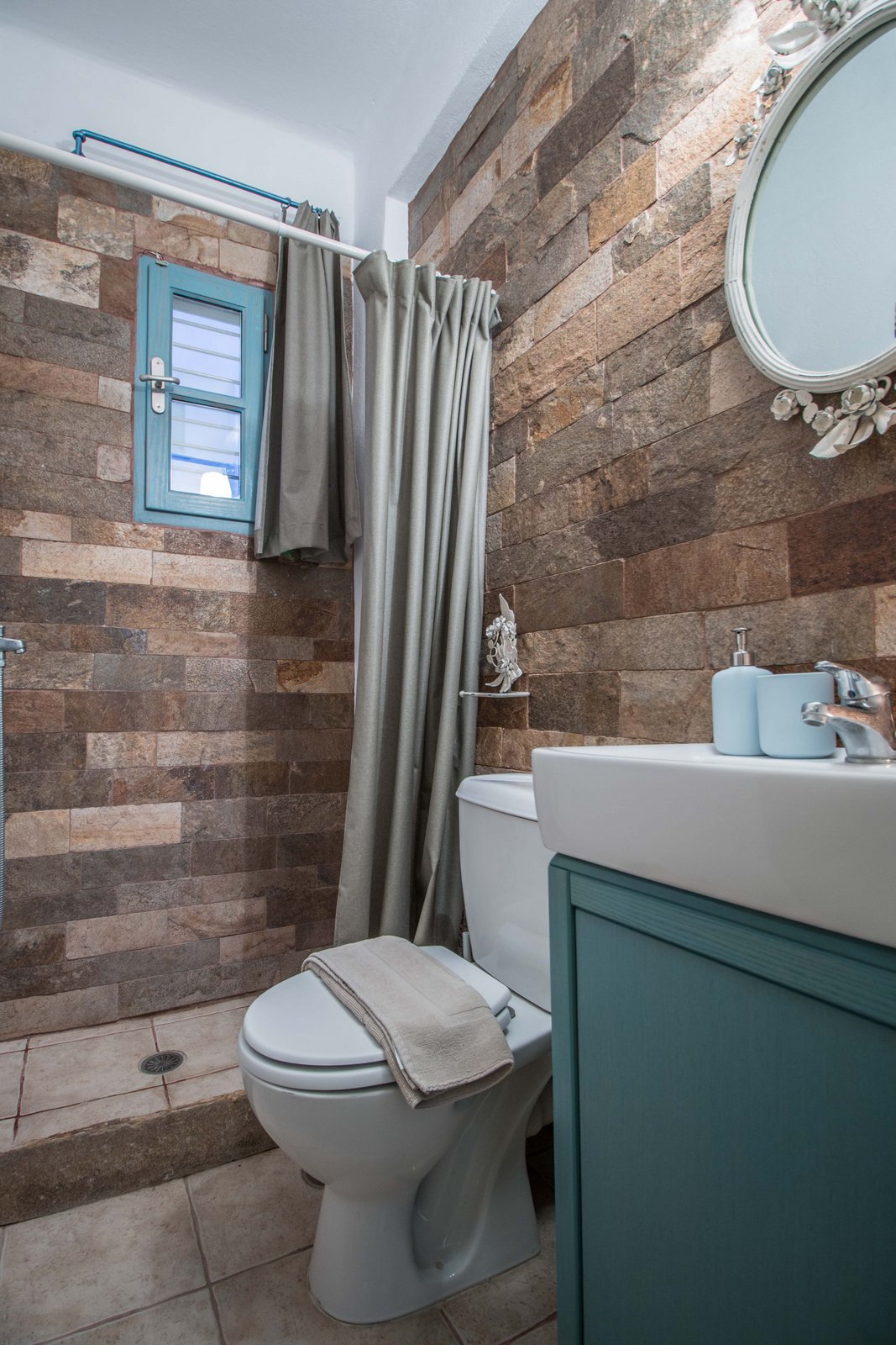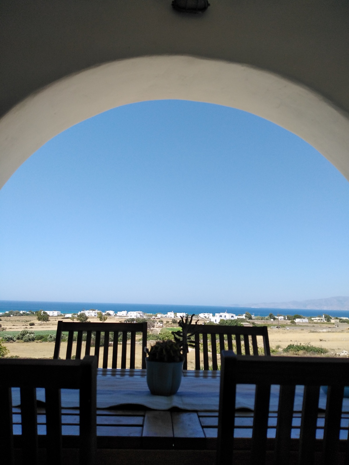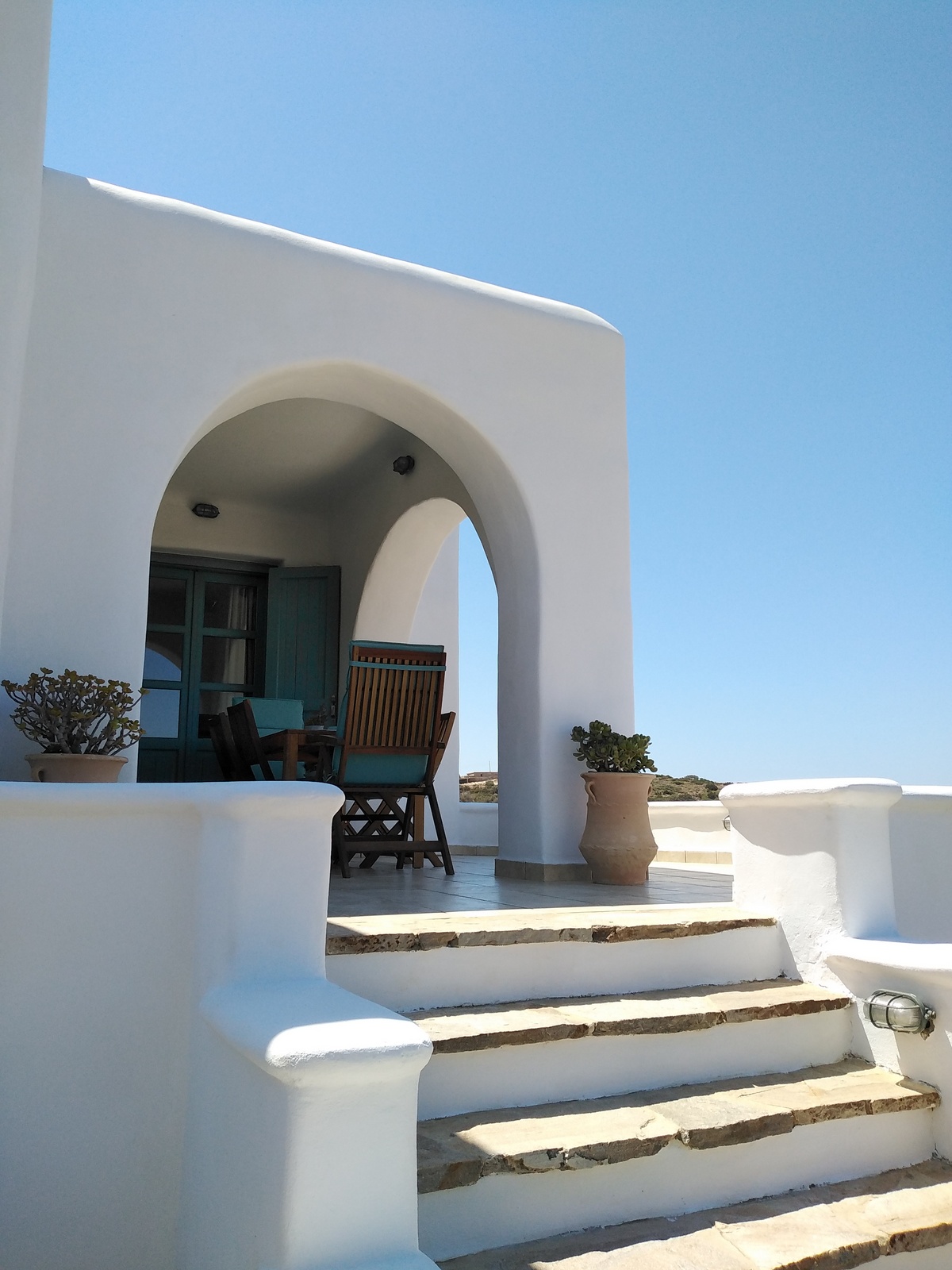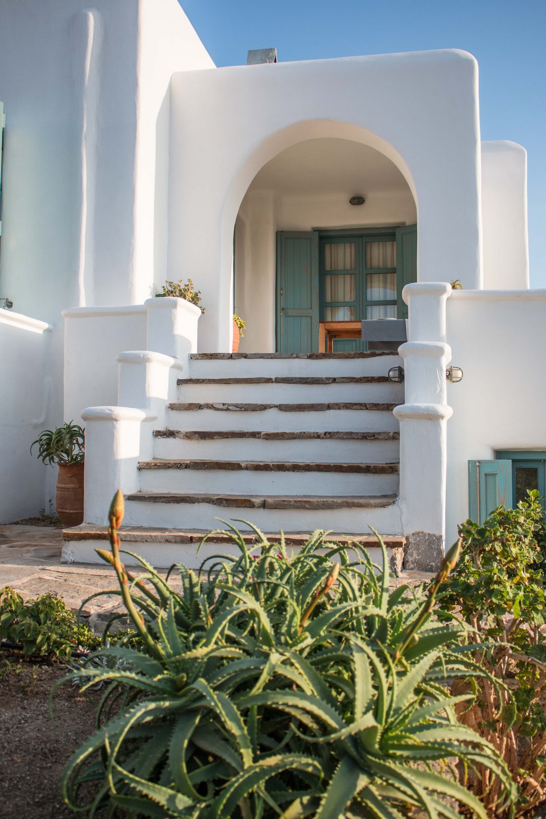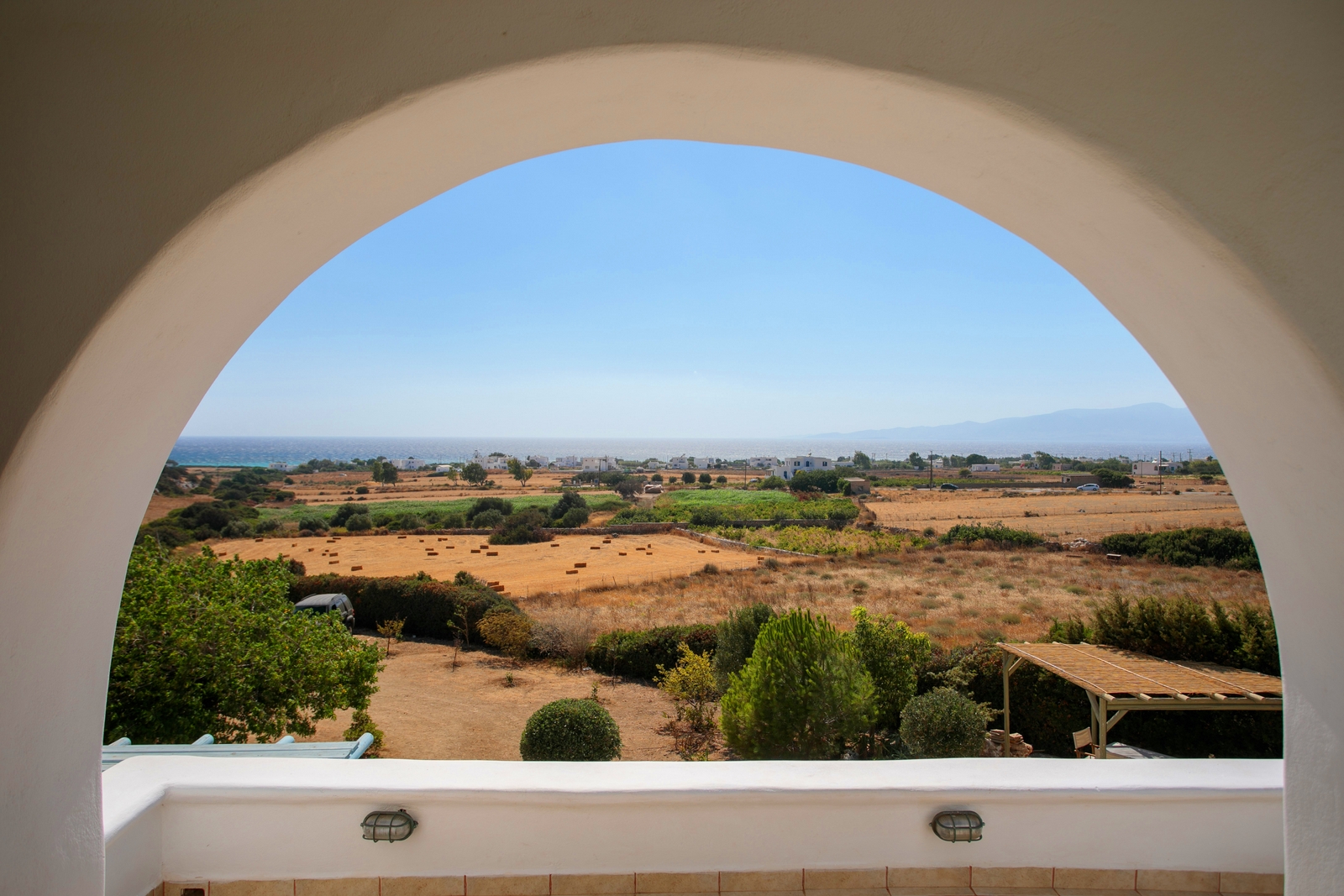 The off-white unit consists of two houses that combine the traditional Cycladic style with modern comforts. Built on a hill with unobstructed views, in a unique surrounding area with squares, stone living rooms, pergolas, dining rooms, BBQ and stone oven.