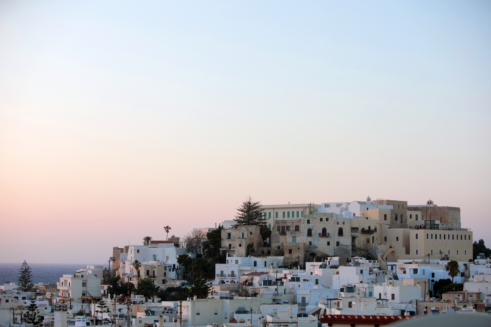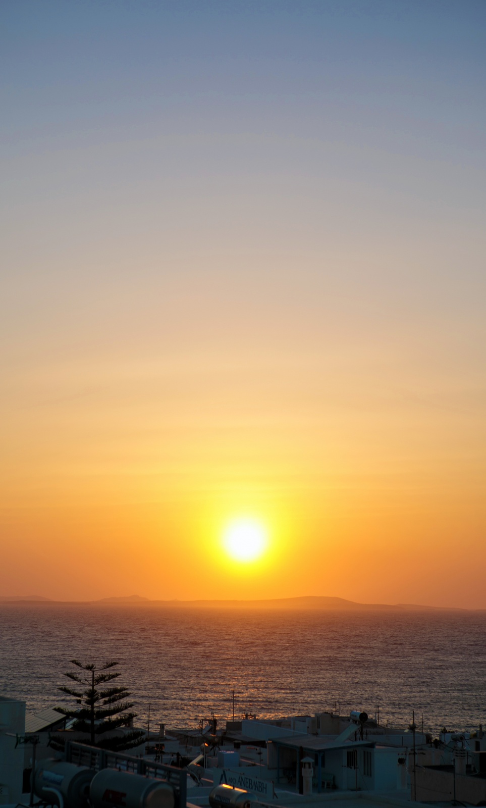 Who would not be at peace and in awe with the deep blue Mediterranean stretching out below you, the sun setting over the peaks of Naxos?